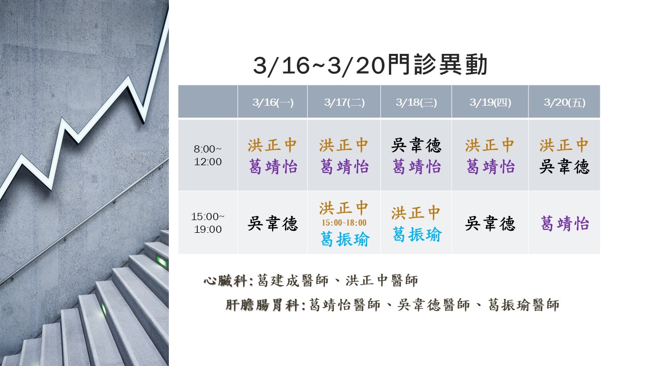 【門診異動公告】115/3/16(一)~3/20(五)門診異動